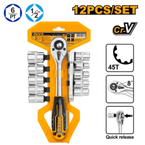 JUEGO DE DADOS M1/2 12PZS 10-24mm CON RATCHET Y EXTENSIÓN INGCO
