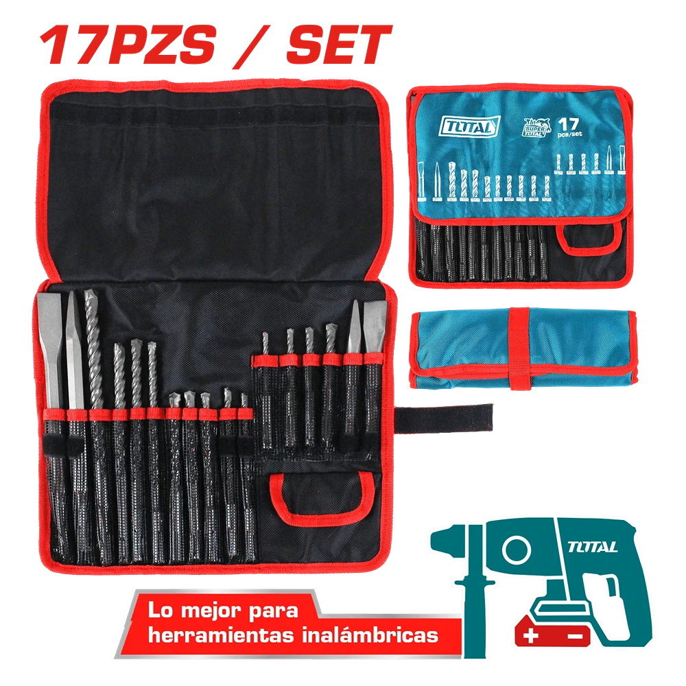 Juego De 17 Mechas Y Cinceles Total, Sds Plus, Industrial
